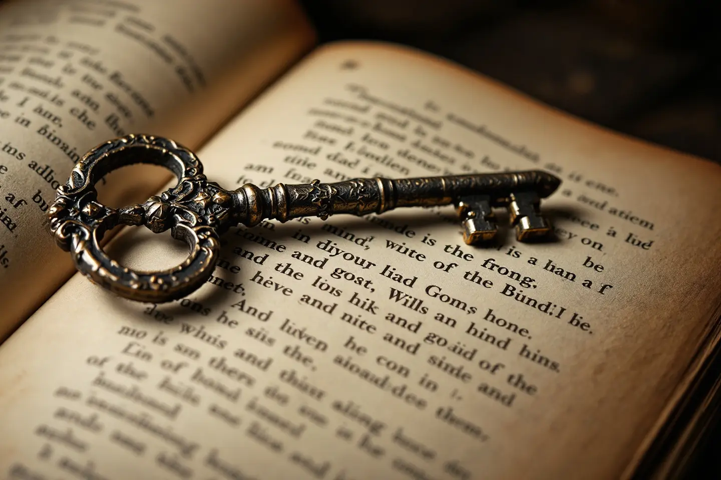 simbolična slika starog ključa položenog na otvorenu bibliju predstavljajući proces danasnje evanđelje tumacenje