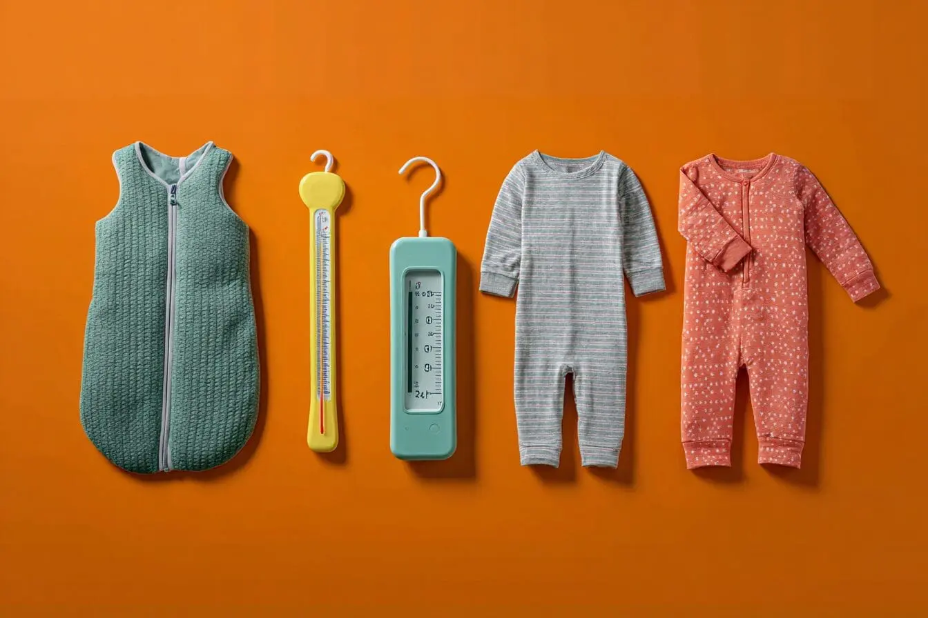 U toplim noćima (iznad 24°C) dovoljan je pelena i bodi bez rukava. Za idealnu temperaturu (20-22°C), koristite bodi dugo ili kratkih rukava i tanju vreću za spavanje. U hladnijim uvjetima (17-20°C), dodajte pidžamu i srednje debljinu vreće. U vrlo hladnim uvjetima (ispod 16°C), koristite deblju pidžamu i najdeblju vreću za spavanje, uz čarapice.